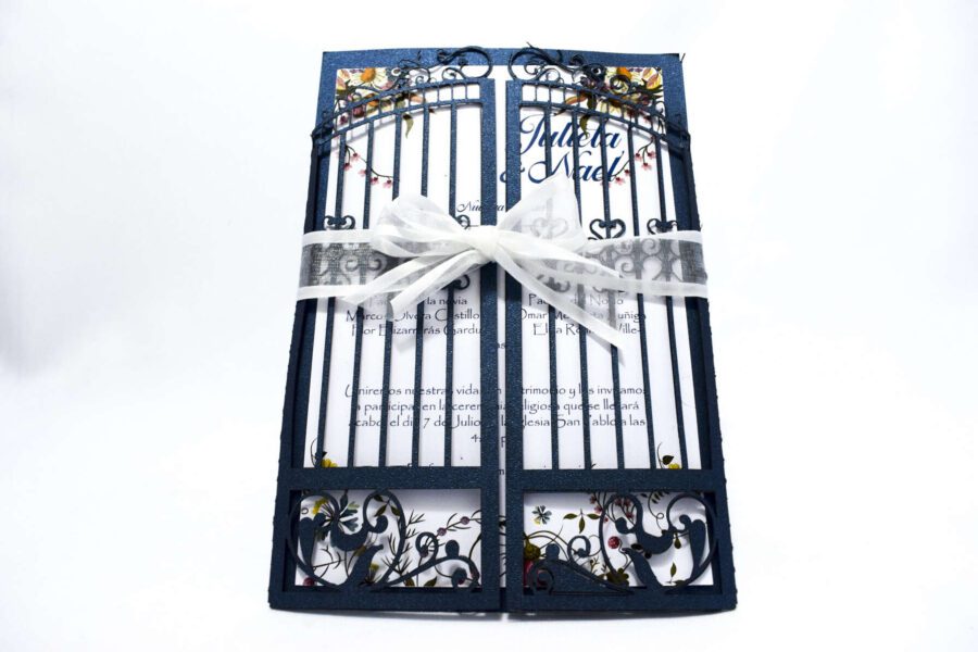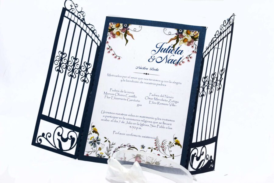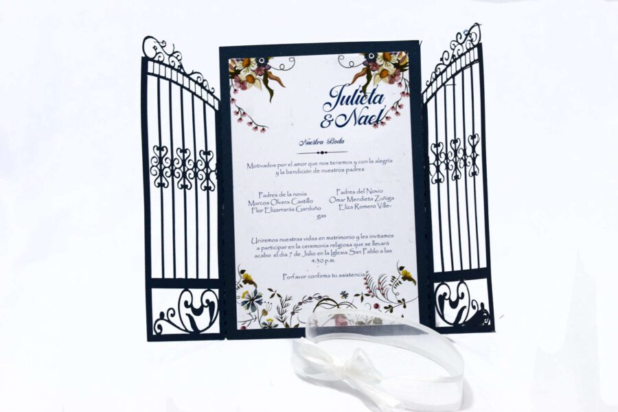 Elegante sobre realizado en corte láser, con impresión a color láser. Se resalta